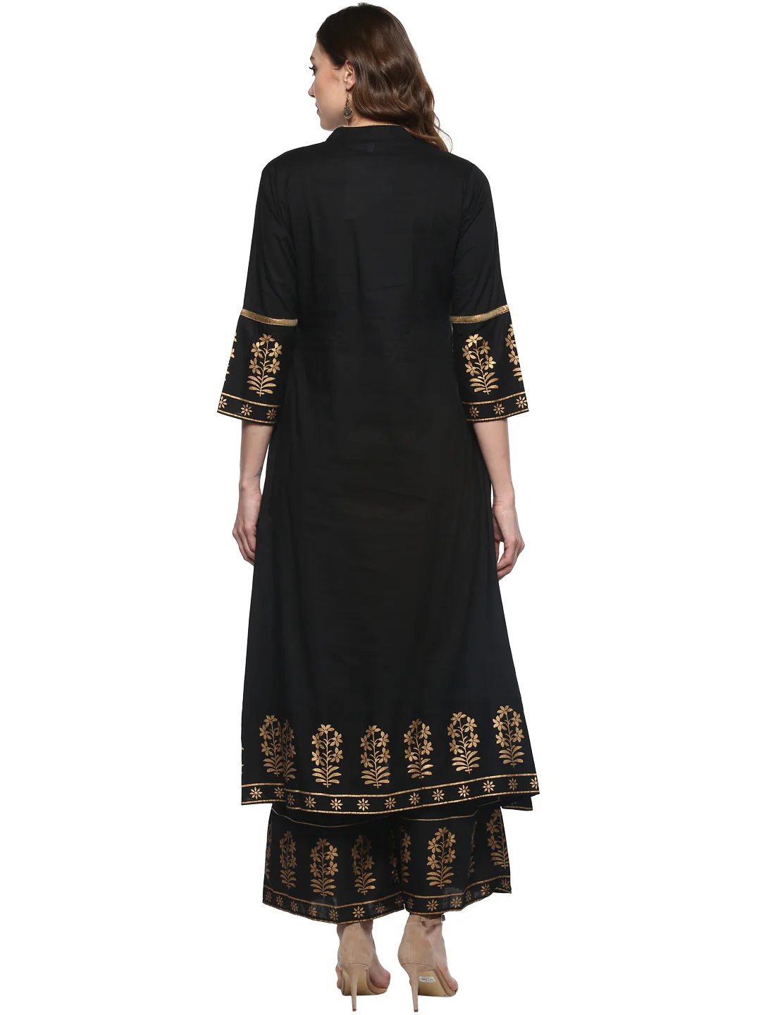 Black And Gold-Toned Solid Kurta With Palazzos.