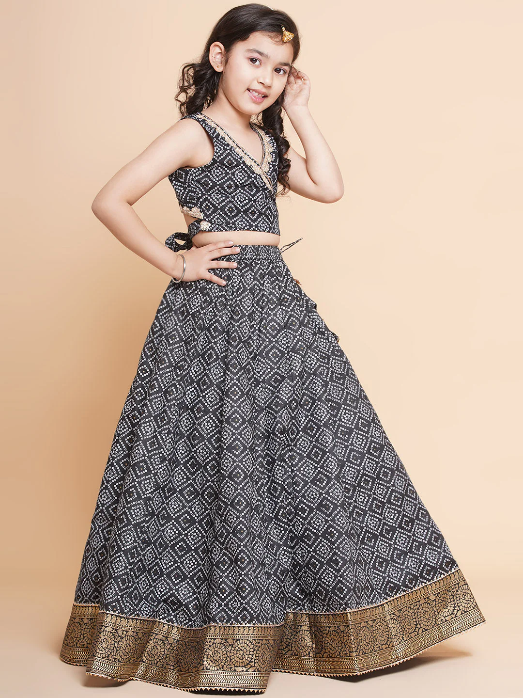 Bitiya by Bhama Girls Bandhani Printed Ready to Wear Cotton Choli With Lehenga