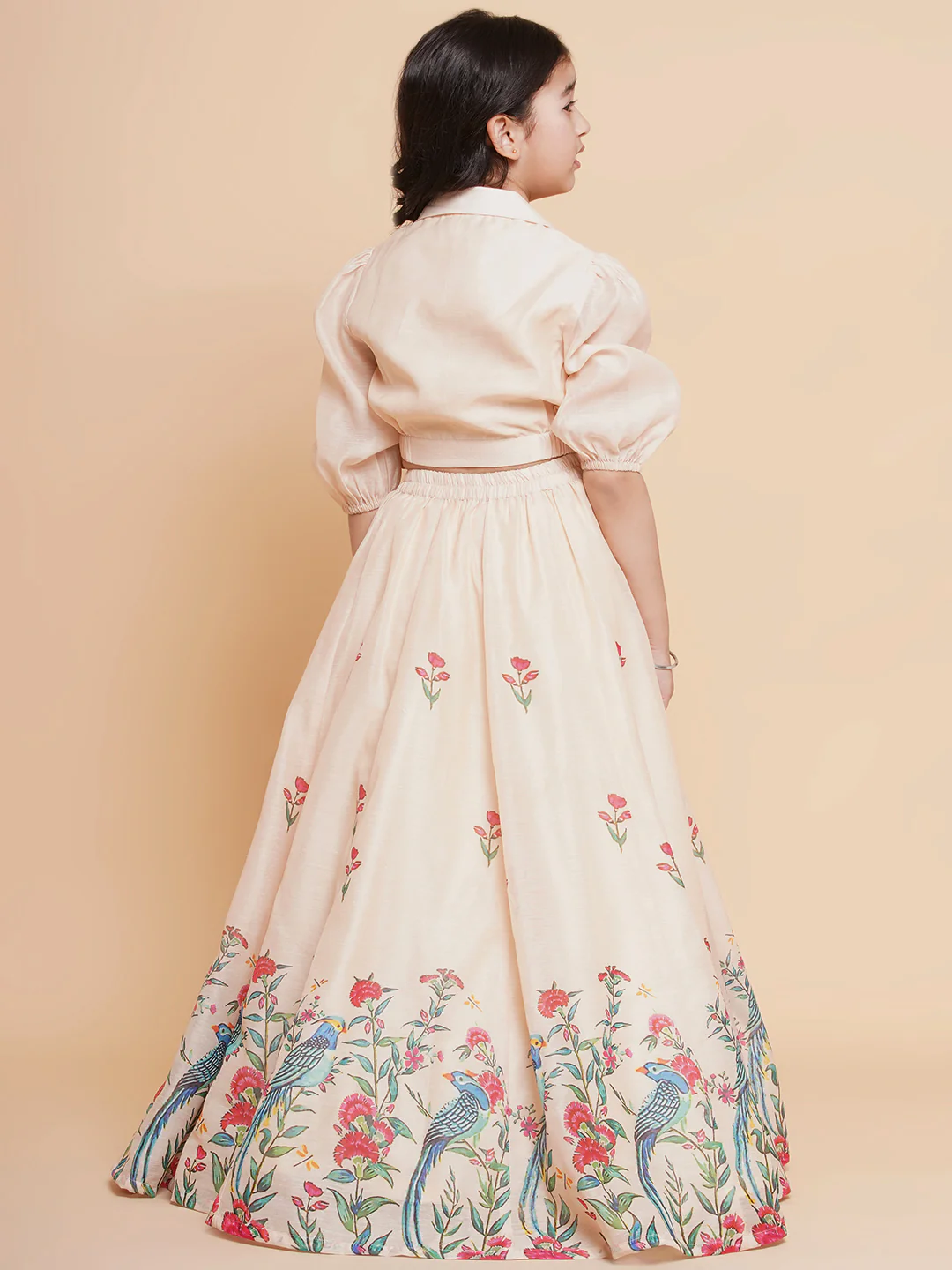 Bitiya by Bhama Girls Beige Peacock Printed Ready to wear Lehenga with Choli