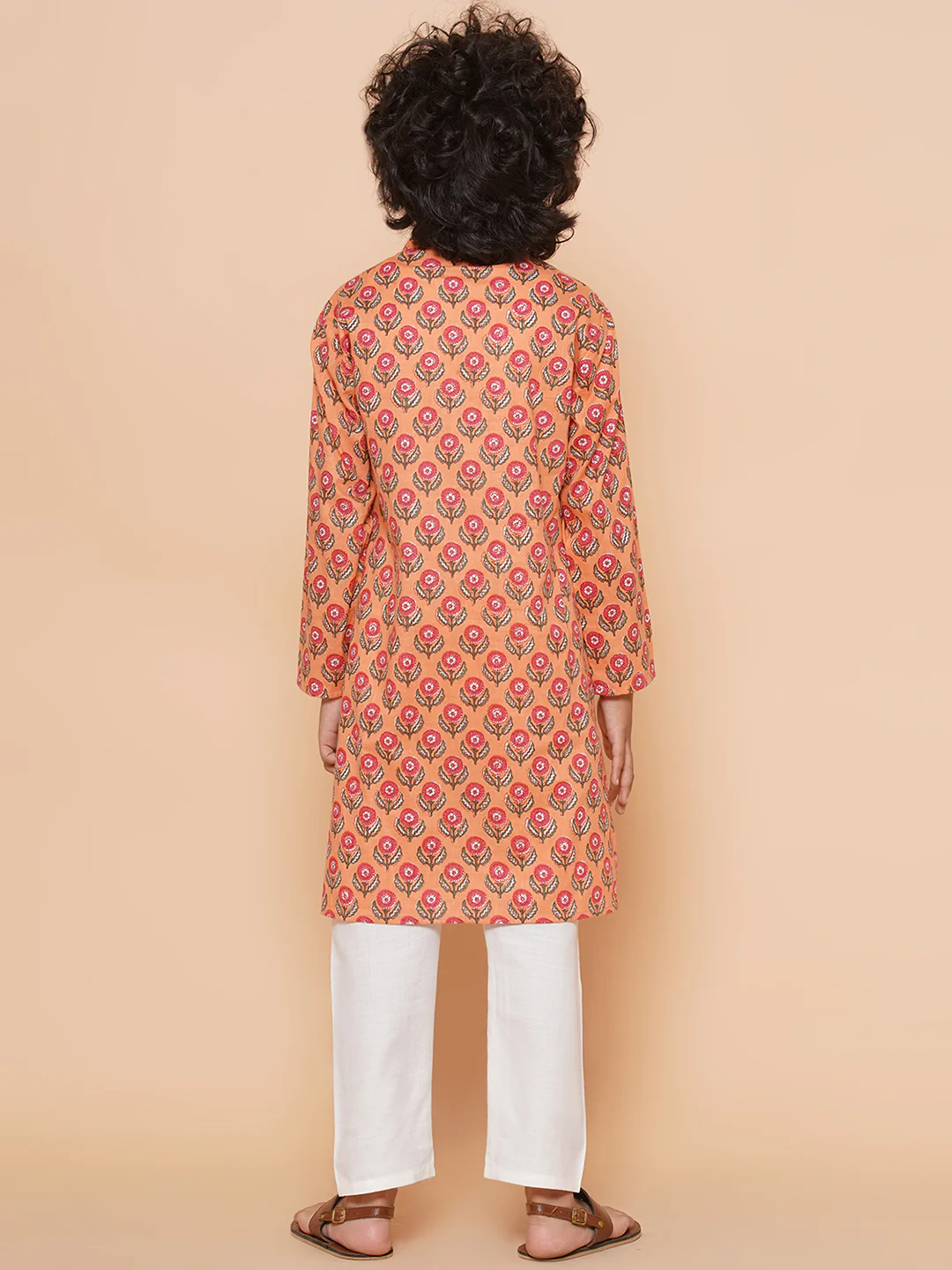 Bittu By Bhama Boys Peach Printed Kurta with Pyjamas